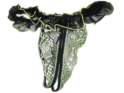 Intimaxy "Ruffle My Feathers" Open Crotch Double G-string Thong with Ruffles - One Size (Fresh Green) Info