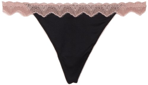 Flirty g-string. Stretch nylon. Contrasting lace trim along waist. Cotton panel. Daringly low, 4 inch rise. Jezebel Style 52939