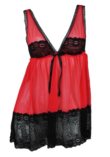 **Get a Sale Price Spree Babydoll Mesh Chemise and Matching G String Set (Small, Red)